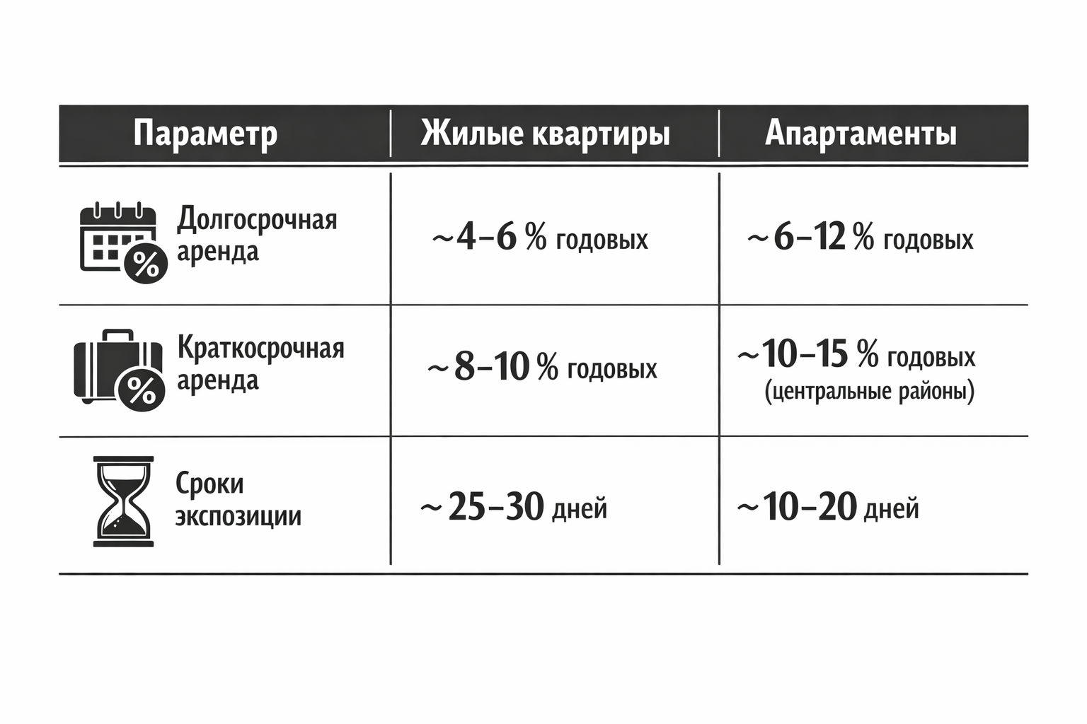 Однако ключевое отличие апартаментов — не только в уровне доходности, но и в ее структуре.