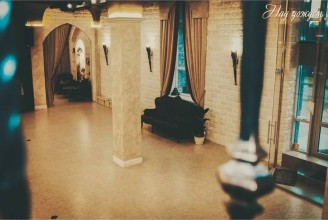 Просторный зал площадью 95 кв. м. привлекает внимание благодаря ярким интерьерным лампочкам и цветным прожекторам.
