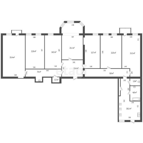 В центре города, в историческом здании «Доходный дом В. Е. Романова», расположена просторная 7-комнатная квартира.