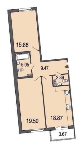 Предлагается двухкомнатная квартира площадью 71 м², без внутренней отделки.
