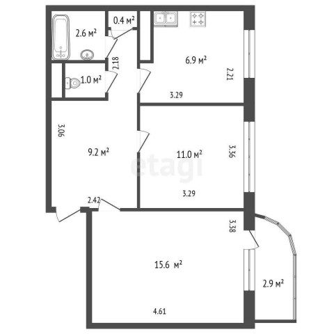 Купить 2х комнатную квартиру, 7/12 эт., 46.7 м²