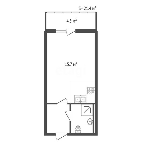 На 20 этаже располагается уютное помещение площадью 21.4 кв.м. с лоджией 3.4 кв.м.