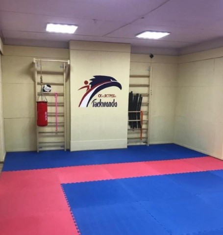 Зал полностью оборудован для эффективных тренировок: рабочая зона с мягким покрытием, две шведские стенки, боксёрская груша, турник, а также специализированный инвентарь: «ракетки», лапы, жёсткие мячи.