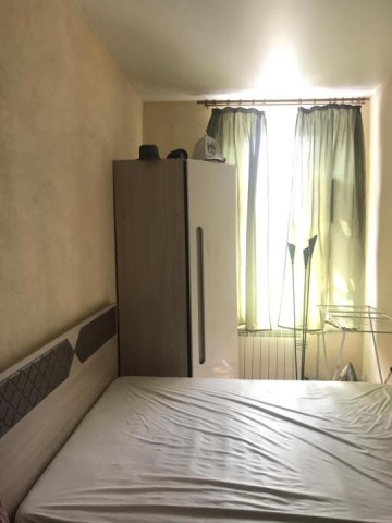 В комнате недавно был сделан ремонт, есть вся необходимая мебель и техника. Из бытовой техники холодильник, чайник, телевизор, стиральная машина на кухне. Соседи очень порядочные люди, поддерживают чистоту в местах общего пользования раз в неделю по графику уборки.