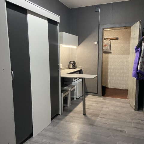 В комнате в идеальном состоянии есть : чайник электрический(новый), мультиварка, холодильник маленький, микроволновка.