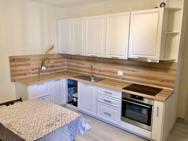 Очень теплая квартира. Просторная кухня-гостиная 17м с новым кухонным гарнитуром, индукционной плитой, духовкой и вытяжкой. Из мебели также в квартире есть кухонный стол, мини-диванчик (для ребенка), два небольших шкафа-купе (все есть на фото). В ванной - теплый пол. Лоджия. Окна выходят на парковку, поэтому шума от детской площадки не будет =) Холодильника и стиральной машины НЕТ.