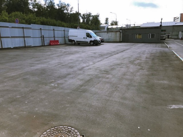 Участок ровный - асфальтированный, огорожен забором, ворота, парковка, вода, электричество, канализация, интернет.